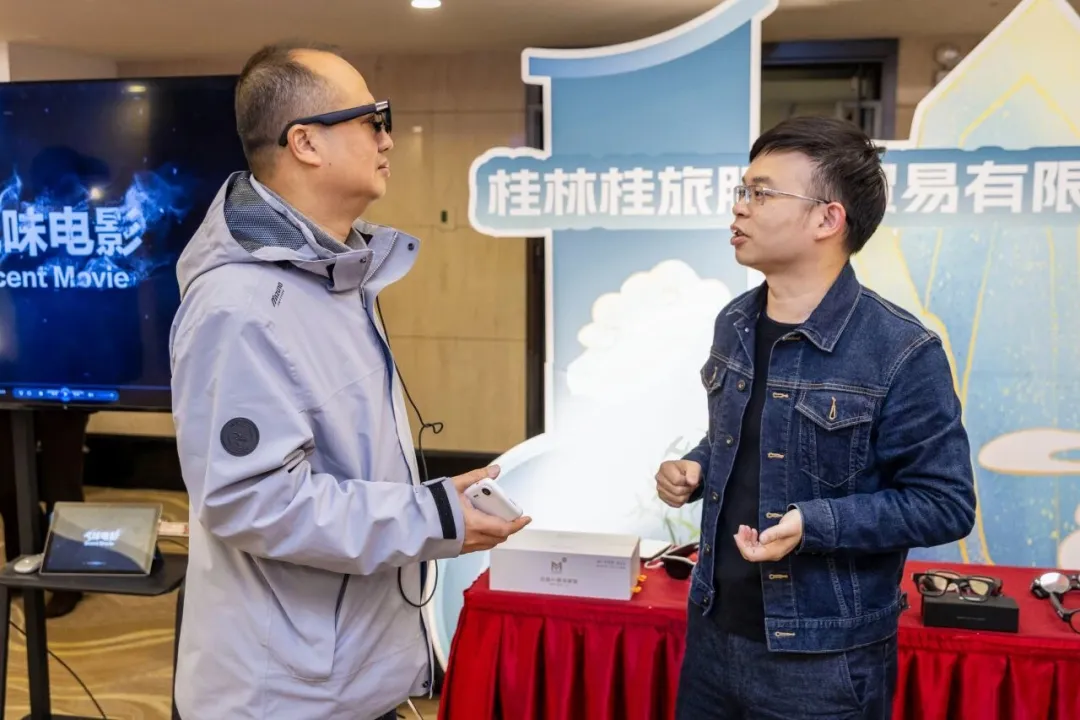在桂林旅股“策马启新章 合韵开鸿局”2026年度新品发布会上,迈越科技与桂林旅股战略合作的首发成果——“一副眼镜游桂林”AI导览系统首次正式亮相,吸引了在场文旅行业嘉宾、投资机构及媒体的高度聚焦,嘉宾们纷纷前往体验区,切身感受AI技术结合桂林美景的独特魅力。