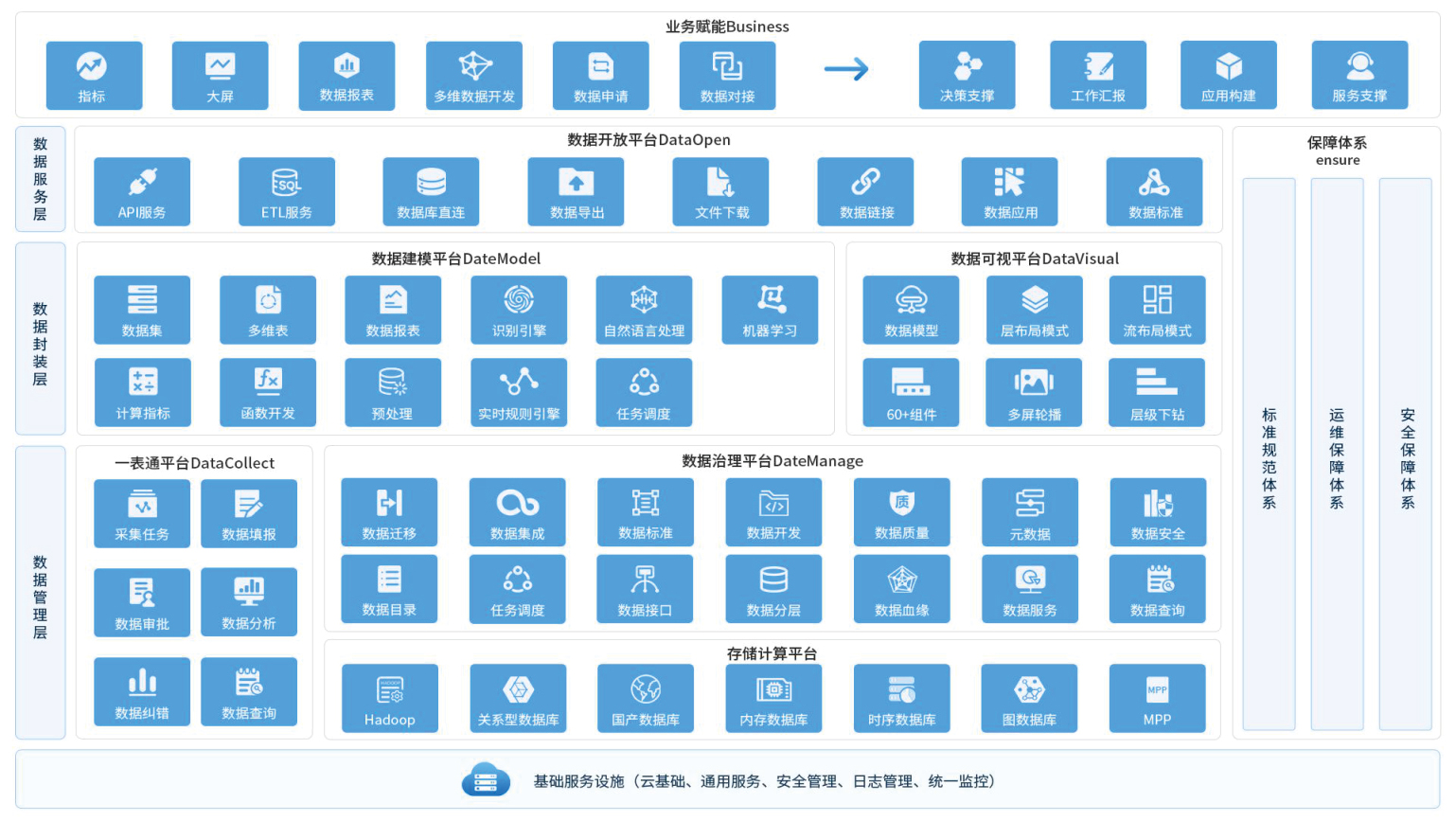 完善的数据标准全域的数据模型、完整的数据治理平台、完善的数据应用