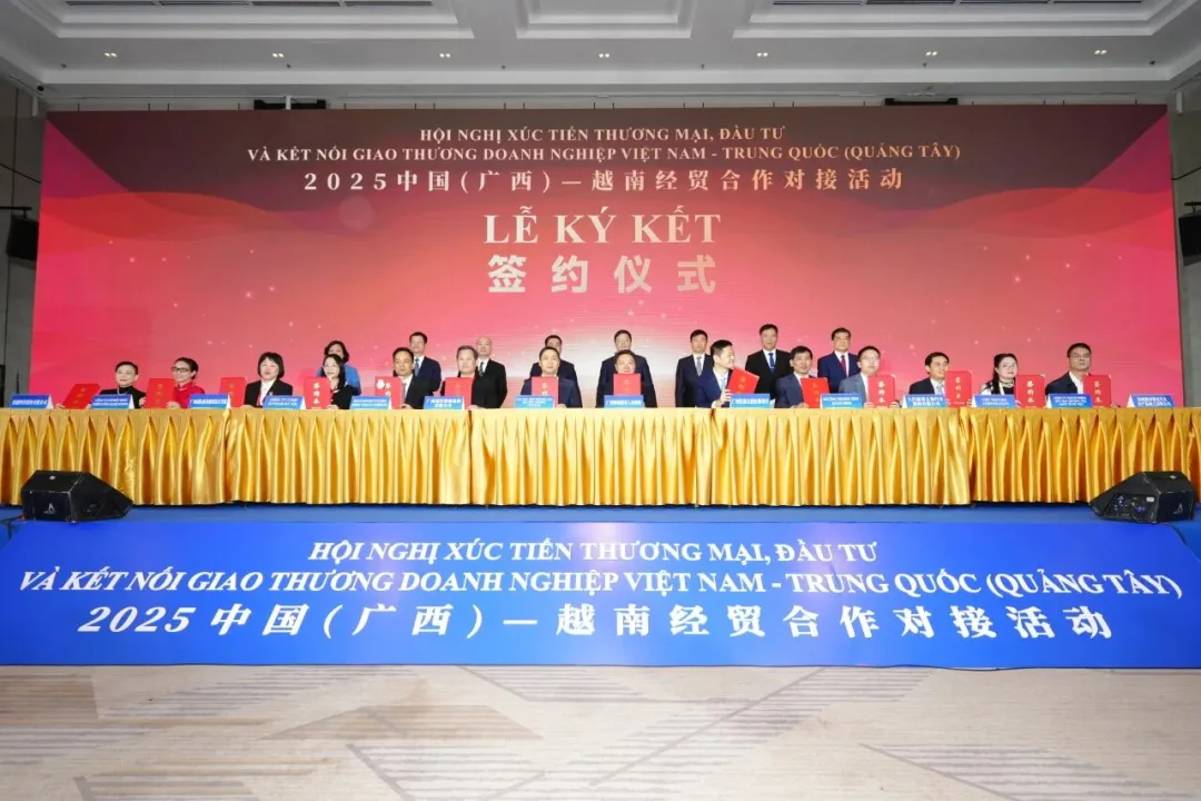 11月26日上午,中国(广西)— 越南经贸合作对接活动在河内隆重举行,自治区主席韦韬与越南工贸部长阮鸿延共同出席,并见证桂越双方签署合作协议,标志着两地经贸合作正迈向更深层次、更宽领域的发展新阶段。