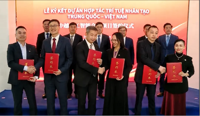韦韬与张越勇见证中越人工智能合作项目签约;