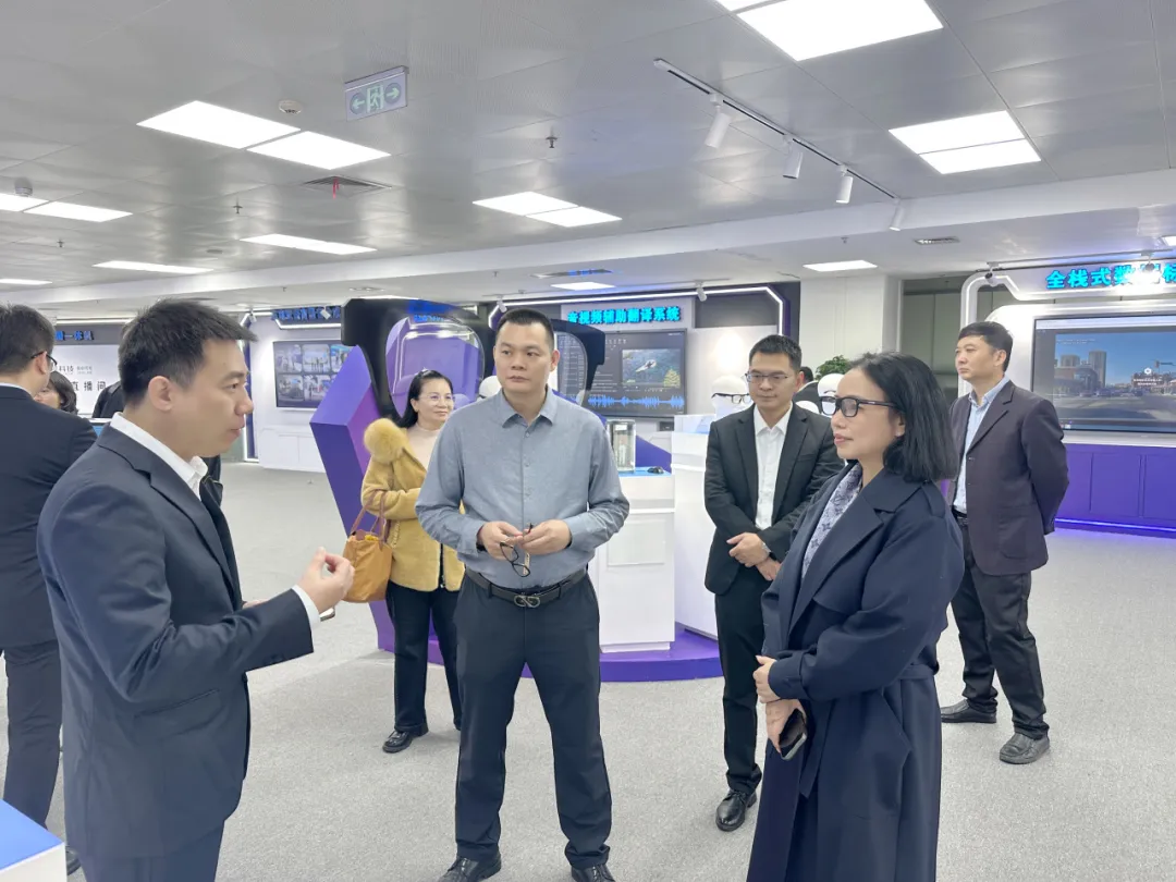 代表团一行首先参观了迈越科技展厅,重点了解了针对消费级算力部署的降本增效需求方案和AI翻译软件,并深度体验了迈越科技自主研发的场景化配置AI+AR眼镜等核心产品。