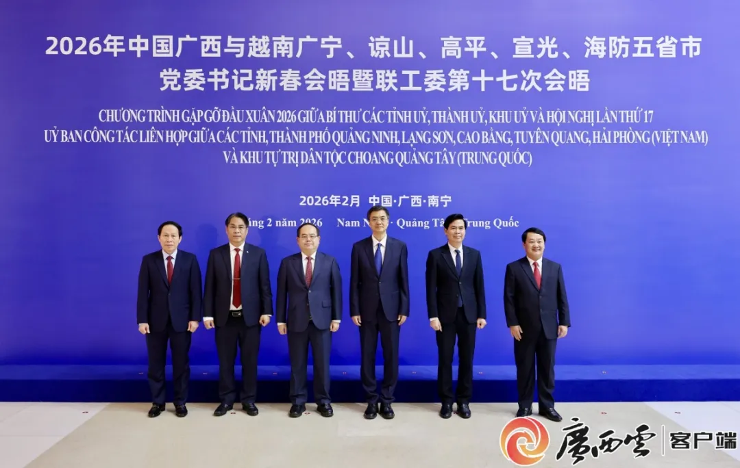 2月10日至2月11日,2026年中国广西与越南五省市党委书记新春会晤活动在南宁举行。广西壮族自治区党委书记陈刚与越南广宁省委书记管明强、谅山省委书记黄国庆、高平省委书记潘升安、宣光省委书记侯阿令、海防市委书记黎进州进行工作会谈,深入贯彻落实习近平总书记同越南党和国家领导人达成的重要共识,共叙友好情谊,共商合作大计,共谋互利共赢。
