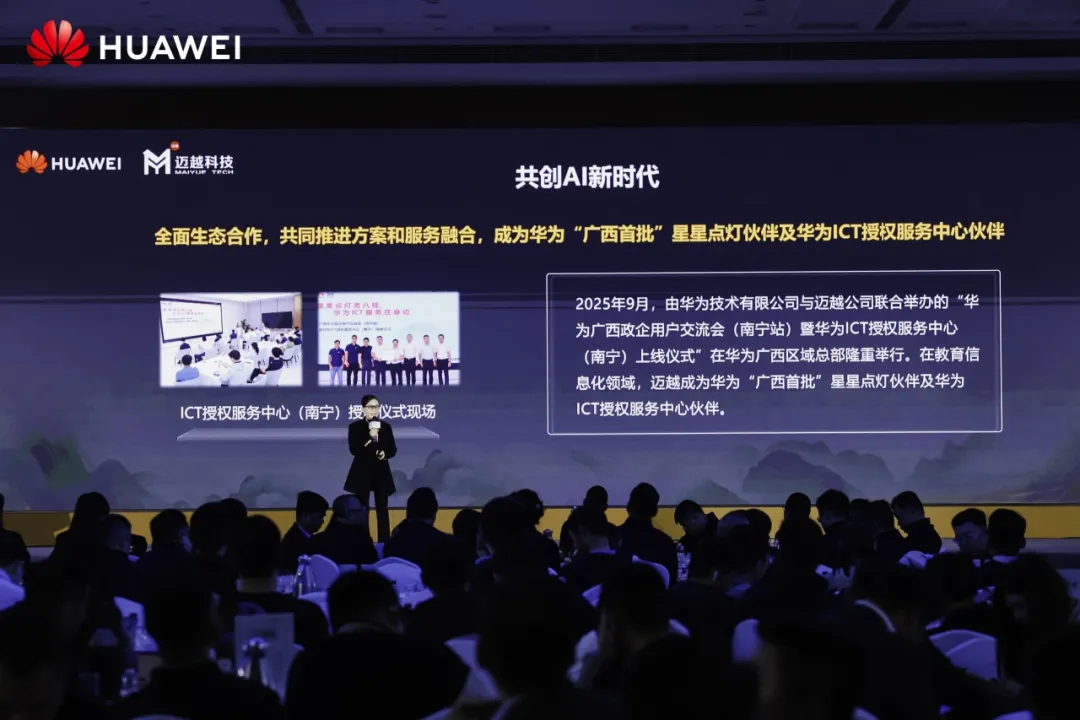 AI时代的到来,让双方的合作迈入“协同共创”的新阶段。2025年,迈越科技与华为重磅发布“迈越昇腾DeepSeek大模型一体机联合方案”;2026年,AI一体机联合解决方案全新亮相。双方通过联合方案创新,将领先技术转化为解决客户实际难题的利器,共同成就客户,也成就彼此的商业价值。同时,在教育信息化领域,迈越科技成为“广西首批”华为星星点灯伙伴及ICT授权服务中心授权服务商,实现从产品合作到服务融合的全面升级。